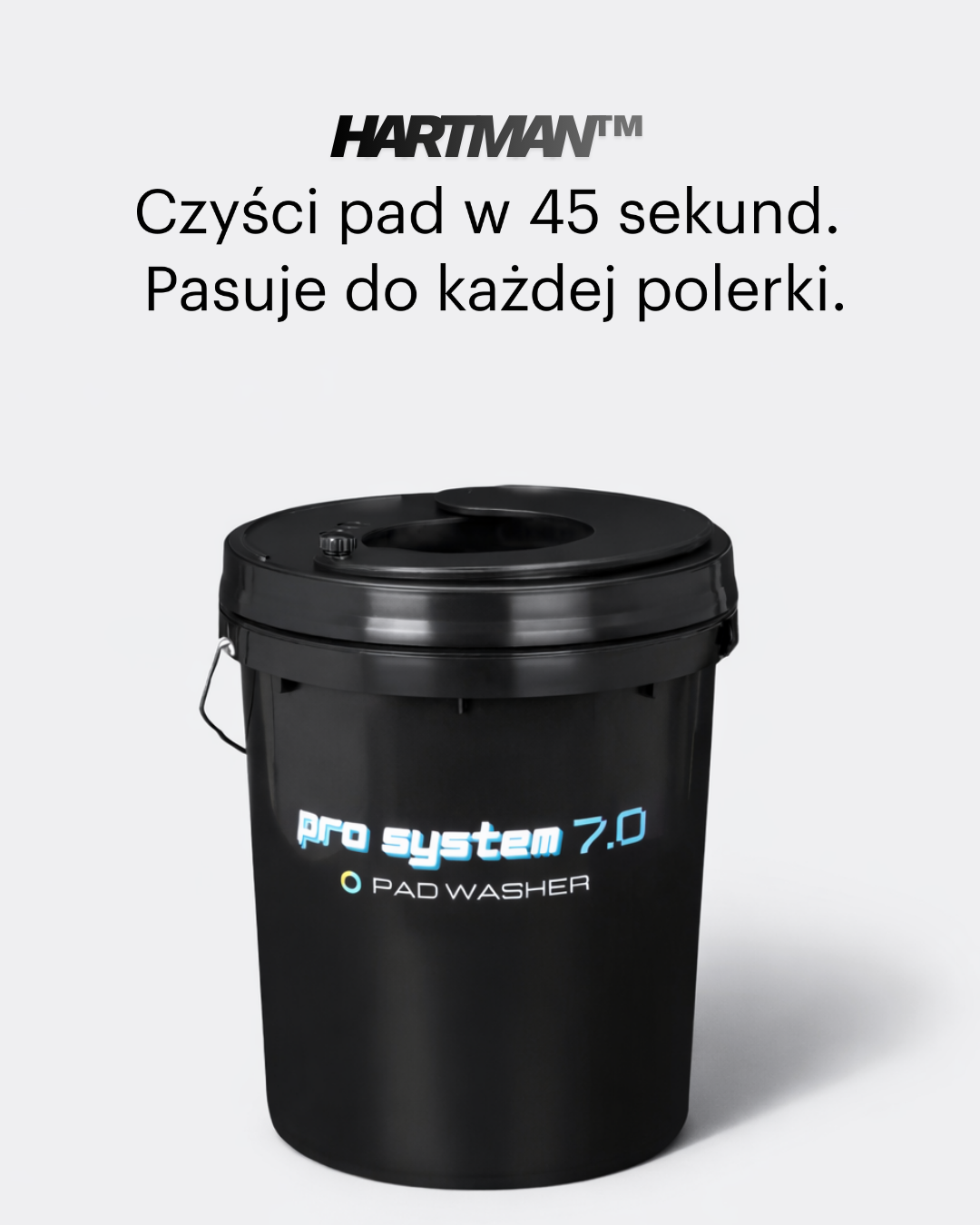 Pad Washer Hartman czyści jeden pad w czasie do 45 sekund, pasuje do każdej polerki i pozwala pracować szybciej bez przestojów. Zamknięty system eliminuje rozpryski i bałagan, zwiększając komfort korekty lakieru.
