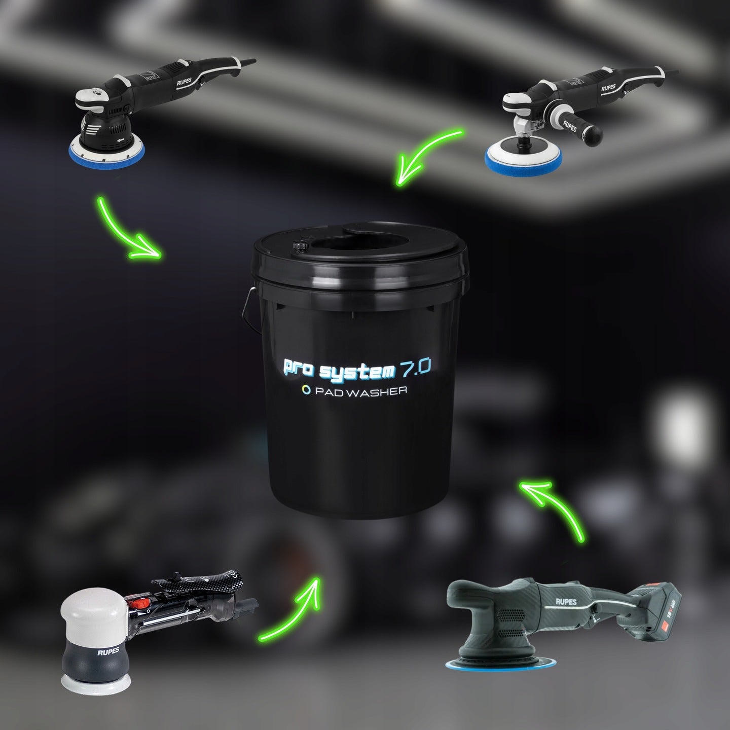 Długie korekty lakieru wymagają częstego czyszczenia padów, ale z Pad Washerem zajmuje to około 45 sekund. Wystarczy umieścić polerkę w systemie, uruchomić ją na niskich obrotach, odwirować – i gotowe! Czysty pad to lepsze polerowanie, mniejsze zużycie pasty i szybsza praca. Oszczędzaj czas, pracuj efektywniej i zwiększ komfort detailingu!